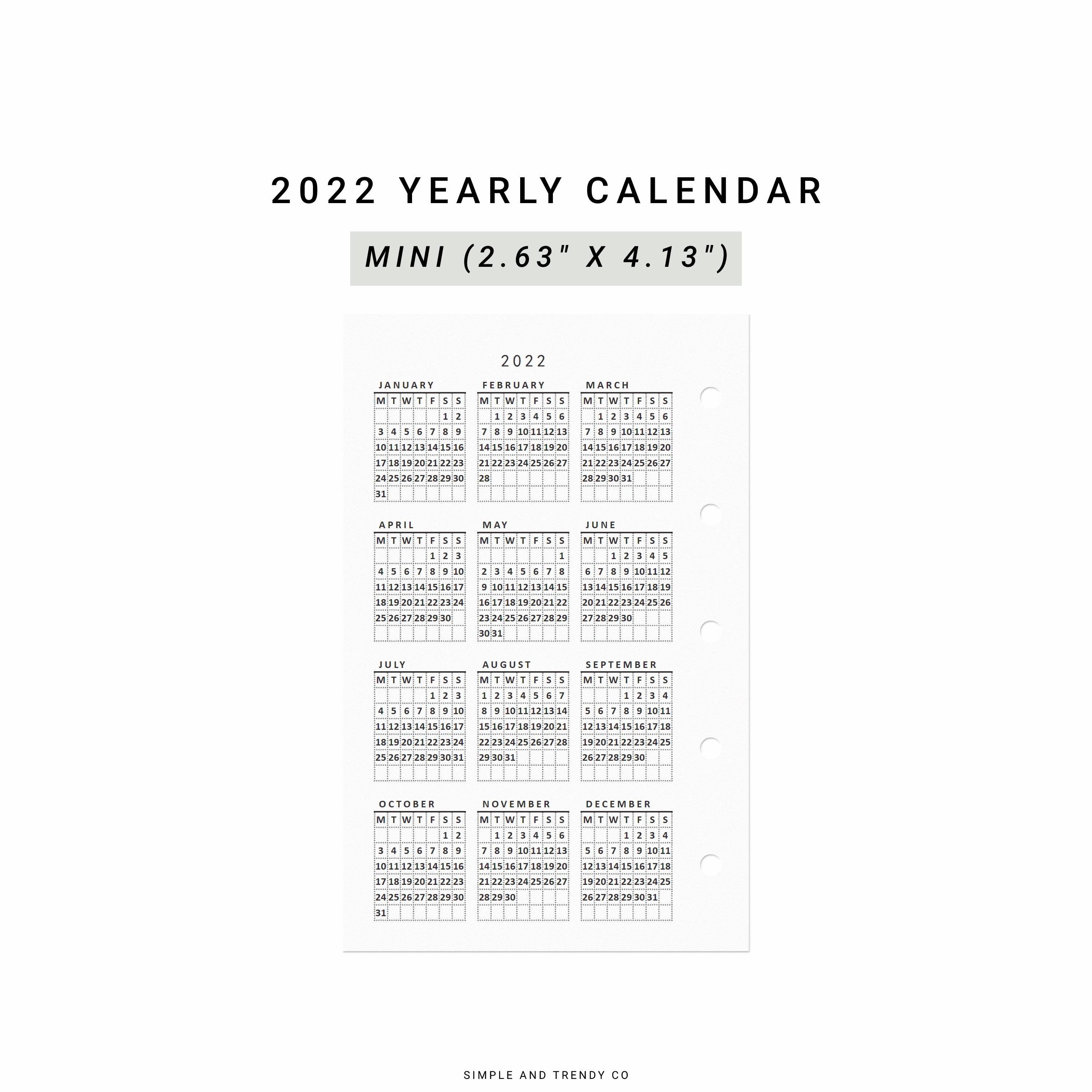 Mini Size Filofax Mini Calendar Printable 2022 Calendar Etsy Uk